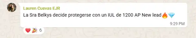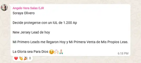 “Soraya se protegió con un IUL de $1,200 AP. ¡Un día de victorias: mi primer lead y mi primera venta de leads propios!”